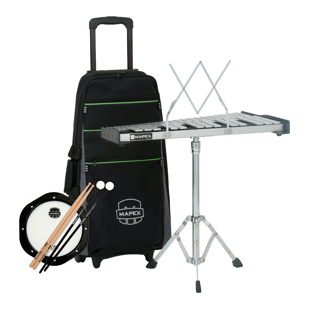 Rent TodayA Bell Set is a melodic percussion instrument, and a great intro instrument for beginning students. An octave and a half bell kit complete with stand, bell mallets, drum pad, drum sticks, and carrying case.