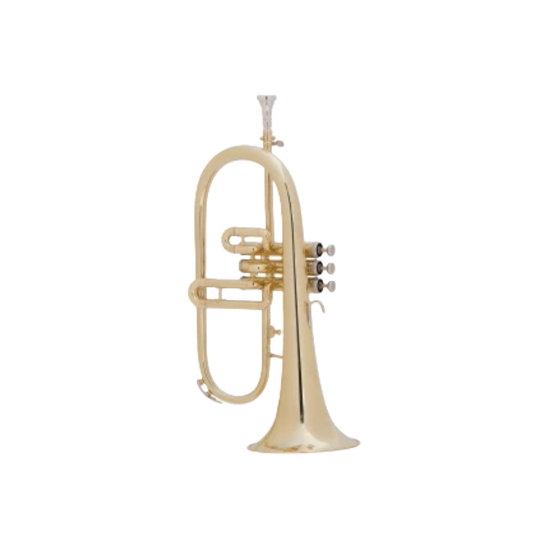 Rent TodayThe flugelhorn is a brass instrument that's similar to a trumpet or cornet, but with a wider, more conical bore.It's a type of valved bugle that was developed in Germany in the early 19th century.Flugelhorns are usually pitched in B♭, but some are in C, and can have three piston valves or rotary valves.