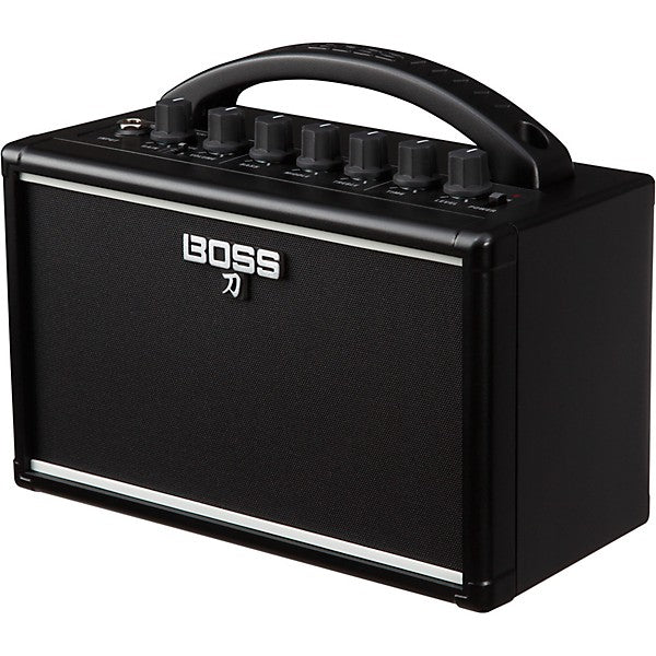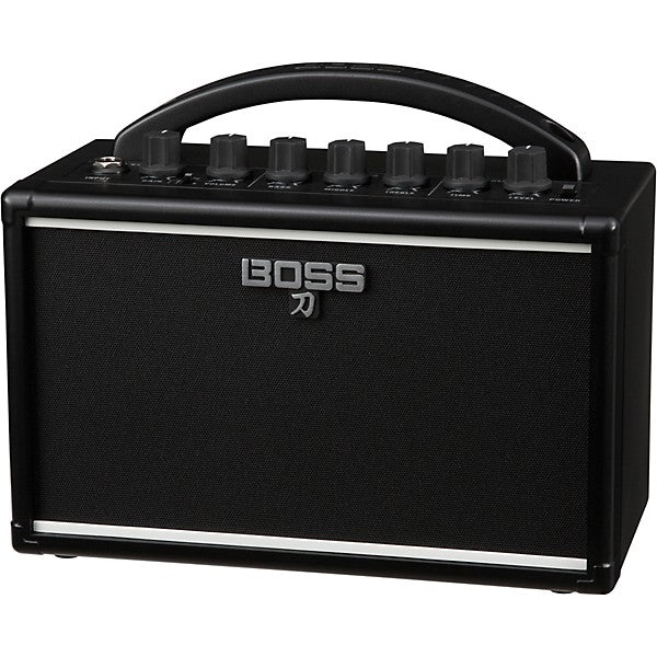 Unlike typical small, battery-powered guitar amps that offer so-so sound quality, the Katana-Mini produces big, full tone that inspires you to plug in and play for hours at a time. BOSS’s comprehensive design approach includes a custom speaker, advanced hardware, refined circuitry, and special component selection, which all work together to produce maximum sound quality in a minimum footprint. The amp also incorporates BOSS’s decades of research in energy-efficient design, providing class-defying power and punch from only six AA-size batteries.