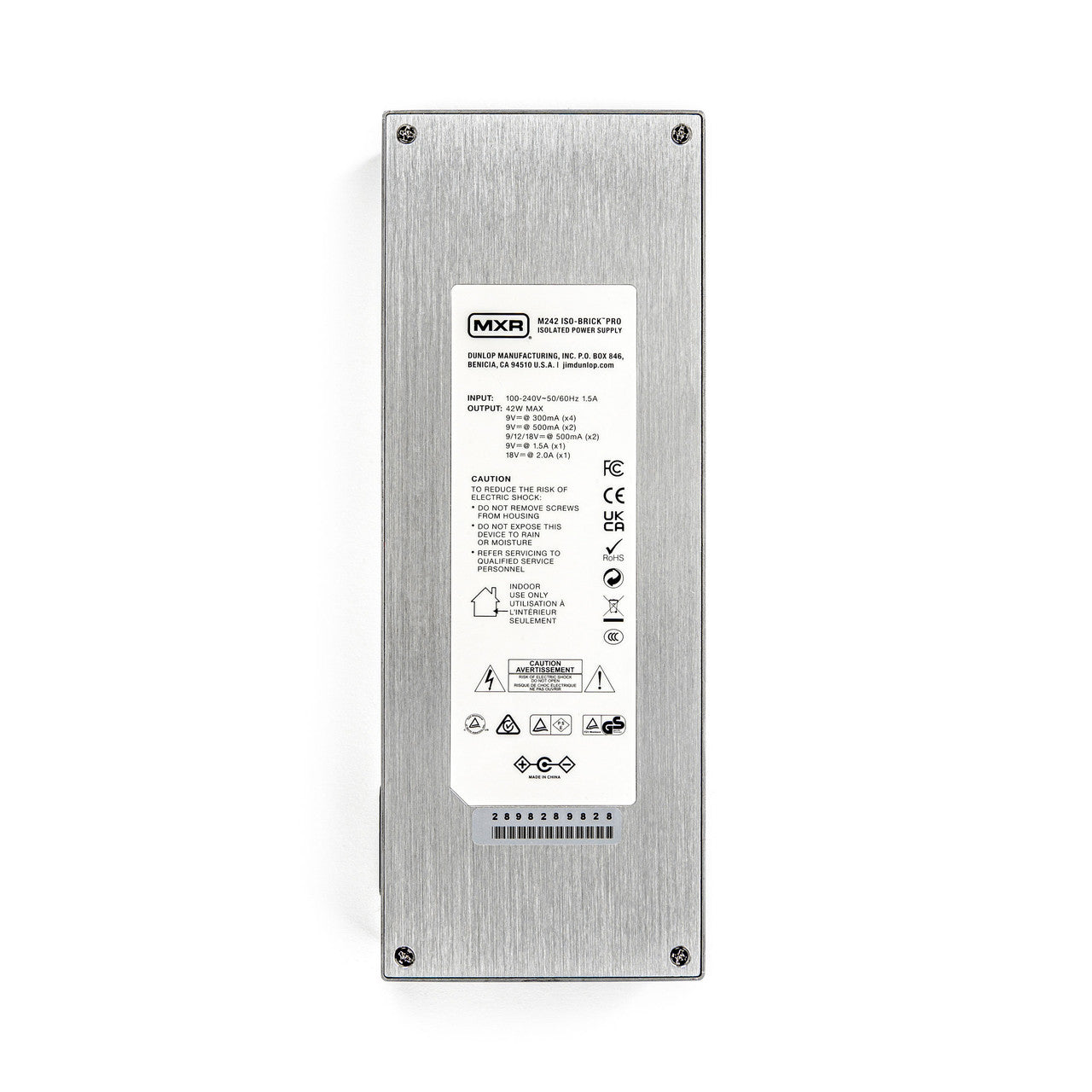 The MXR Iso-Brick Pro Power Supply delivers clean, steady voltages to a diverse range of pedal types in a sleek form factor so that you can confidently power your entire board without any extra bulk.