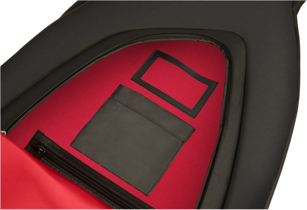Fender's F610 Series gig bag is a stylish and affordable way to keep your dreadnought acoustic guitar safe while traveling. Featuring our iconic asymmetrical Fender shape, its durable outer layer is constructed of tough 600 Denier polyester that protects against impacts while avoiding ripping and tearing. Its interior is filled with 10mm padding and lined with soft touch microfiber that keeps your instrument secure while preventing potential finish damage. The F610 gig bag also comes with a comfortable two-piece handle and ergonomic air mesh backpack straps with easily adjustable ladder lock buckles, so you can comfortably carry your instrument without unnecessary physical strain. Plus, the front storage pocket offers additional storage space for small accessories and a business card window.