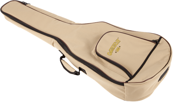 Gig bags designed specifically for the Gretsch® Roots and Acoustic series instruments. Features include: a tan 600 Denier exterior with 15 mm thick premium internal foam padding, an exterior pocket and padded backpack style shoulder straps.