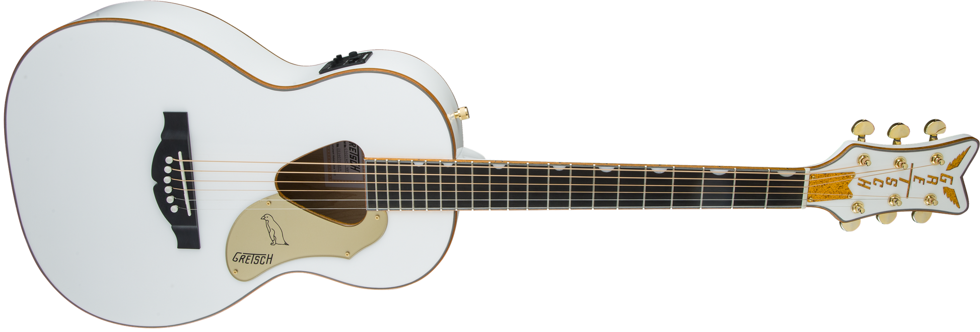 Surely one of the most fabulous Gretsch birds ever to take flight, the G5021WPE Rancher™ Penguin™ Parlor Acoustic/Electric delivers classic Penguin style and appointments in a richly resonant parlor-size acoustic guitar.
