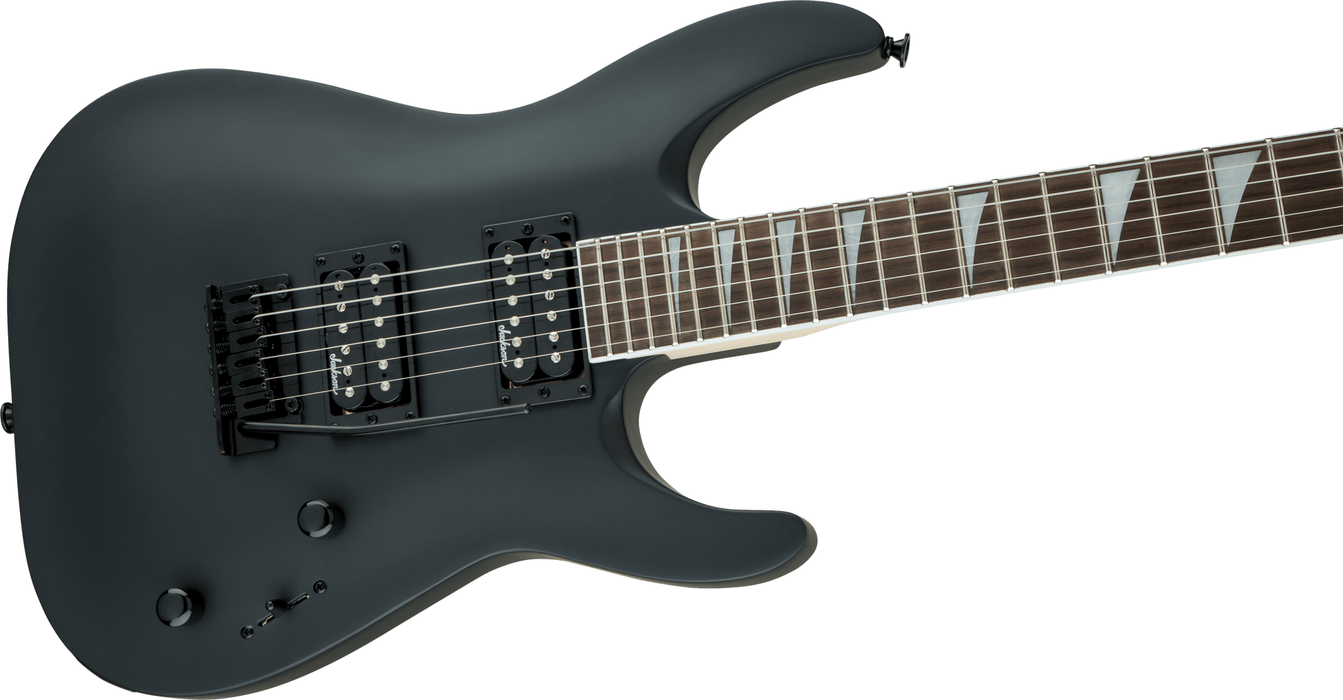 A pair of Jackson high-output humbucking pickups with ceramic magnets cranks out clear tone with plenty of girth, and can be shaped with a three-way toggle switch and single volume and tone controls.