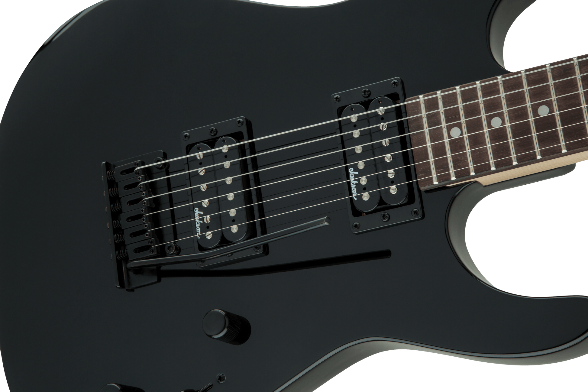 A pair of Jackson high-output humbucking pickups with ceramic magnets cranks out clear tone with plenty of girth, and can be shaped with a three-way toggle switch and single volume and tone controls.