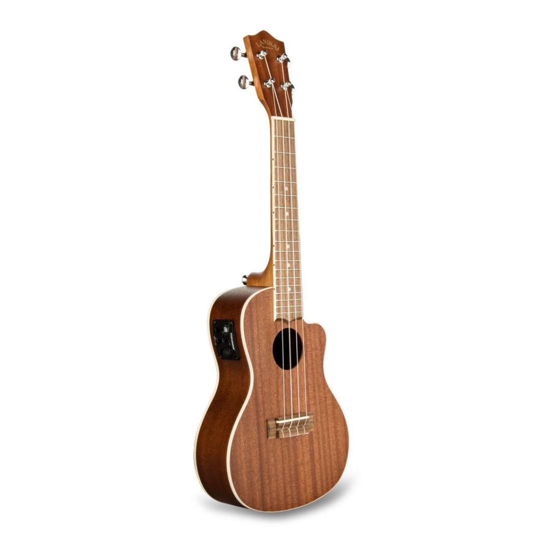 The Lanikai Mahogany Series MA-CEC Acoustic/Electric Concert Ukulele delivers dynamic new features such as a wider nut for player comfort, select wood, open-back tuners, D’Addario® strings, NuBone XB® nut and saddle, a padded gig bag, and a Limited Lifetime Warranty.