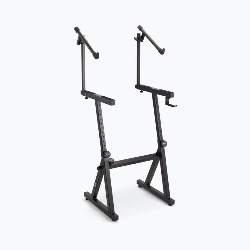 Holds two of your keyboards for ergonomic playing and efficient setup