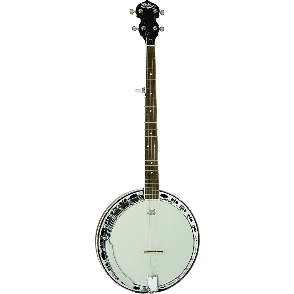 Washburn Americana Series 5-String Resonator Banjo with rolled brass tone ring. Includes hardshell case.